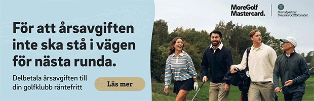 Med MoreGolf Mastercard kan du göra betalningar och ta ut kontanter. Ordinarie årsavgift 295 kr. Kreditränta f.n. 17,99 % (februari 2026), rörlig. Vid en utnyttjad kredit på 20 000 kr är den effektiva räntan 18,67 % vid betalning med e-faktura och det sammanlagda belopp som ska betalas är 21 871 kr vid betalning med e-faktura. Beloppet är uträknat utifrån ett exempel där krediten är återbetald på 12 månader (avbetalningsbelopp i snitt 1 823 kr vid betalning med e-faktura) och att 39 räntefria dagar utnyttjats samt att krediten nyttjats utan avgift för kontantuttag. Kontantuttag kostar 3 % av uttaget belopp, dock lägst 45 kr per uttag. Valutaväxlingspåslag är 1,65 % på valutakursen. Betalas inte hela kontoskulden på en gång ska kontoskulden återbetalas genom månadsvisa betalningar om lägst 3 %. Inbetalningsbeloppet är dock lägst 150 kr, men högst skulden på kontot. Aviavgiften är 35 kr/pappersfaktura, 0 kr om du använder e-faktura. Avtalet gäller tills vidare och ångerrätt gäller. Svenska Golfförbundet samarbetar med Entercard Group AB och är kreditförmedlare avseende betal- och kreditkortet. Kreditgivare: Entercard Group AB (org nr 556673-0585) 105 34 Stockholm. Företaget står under tillsyn av Finansinspektionen.