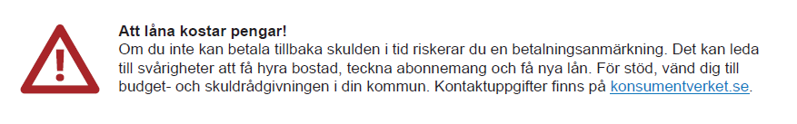 För att kunna jämföra med andra typer av krediter visas här den effektiva räntan och det totala beloppet att betala: